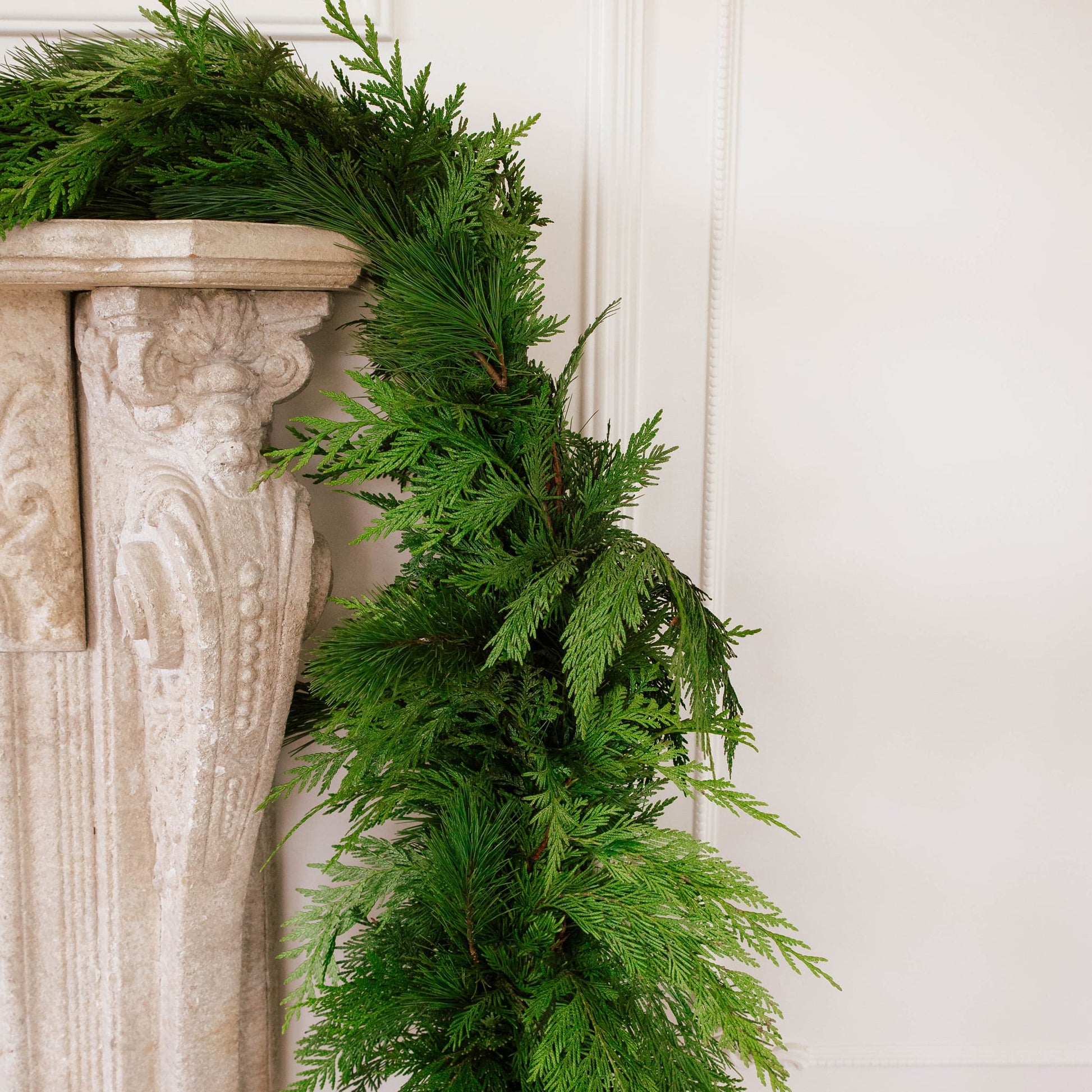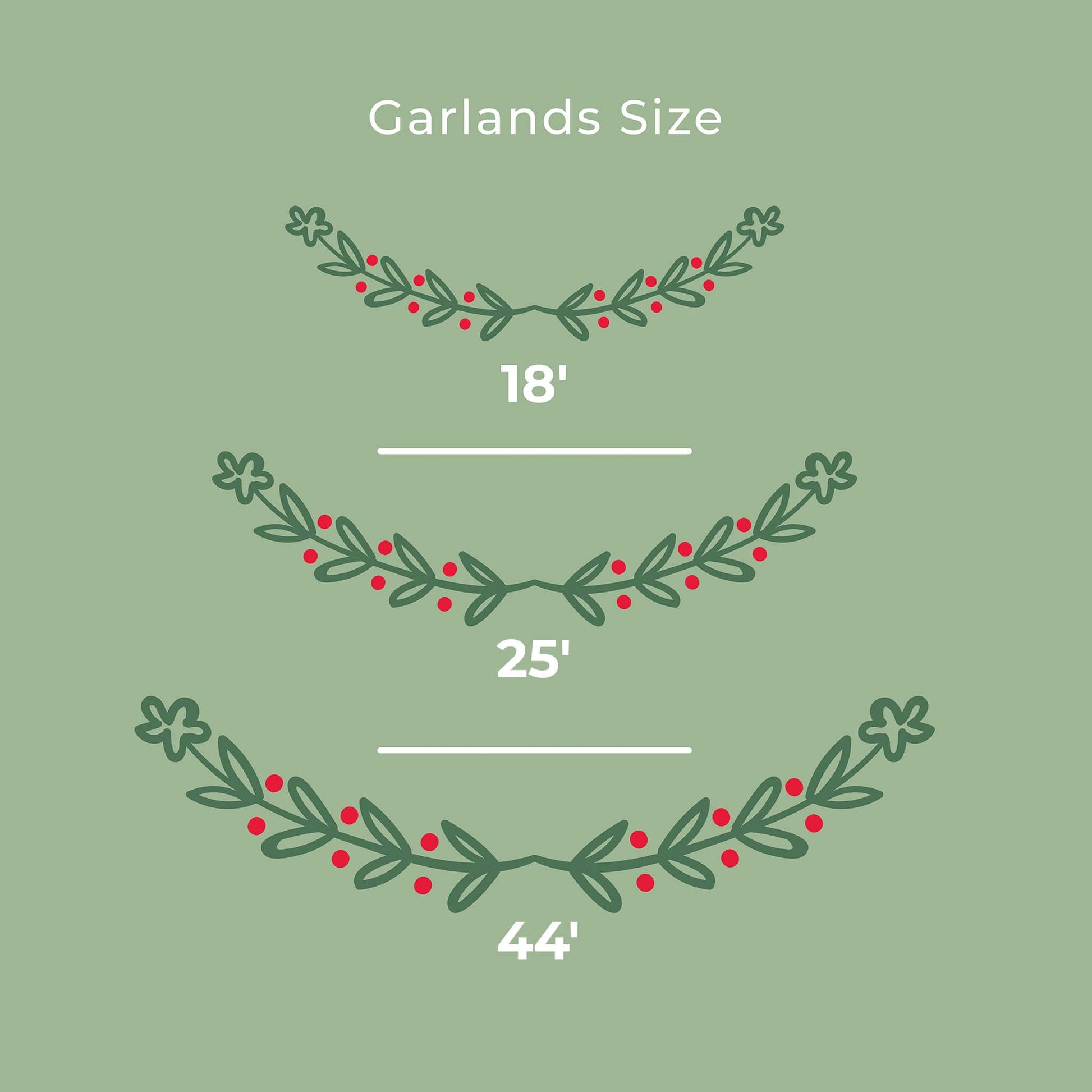 Anticipated Freshness Duration: To keep garlands fresh, place them outdoors in a chilled, shaded area. Indoors, they can last up to 3 weeks with proper care. Lightly mist the cut ends with water every other day to maintain moisture. Keep away from heat vents, direct sunlight, and large windows, as heat and sun can cause drying and fading.