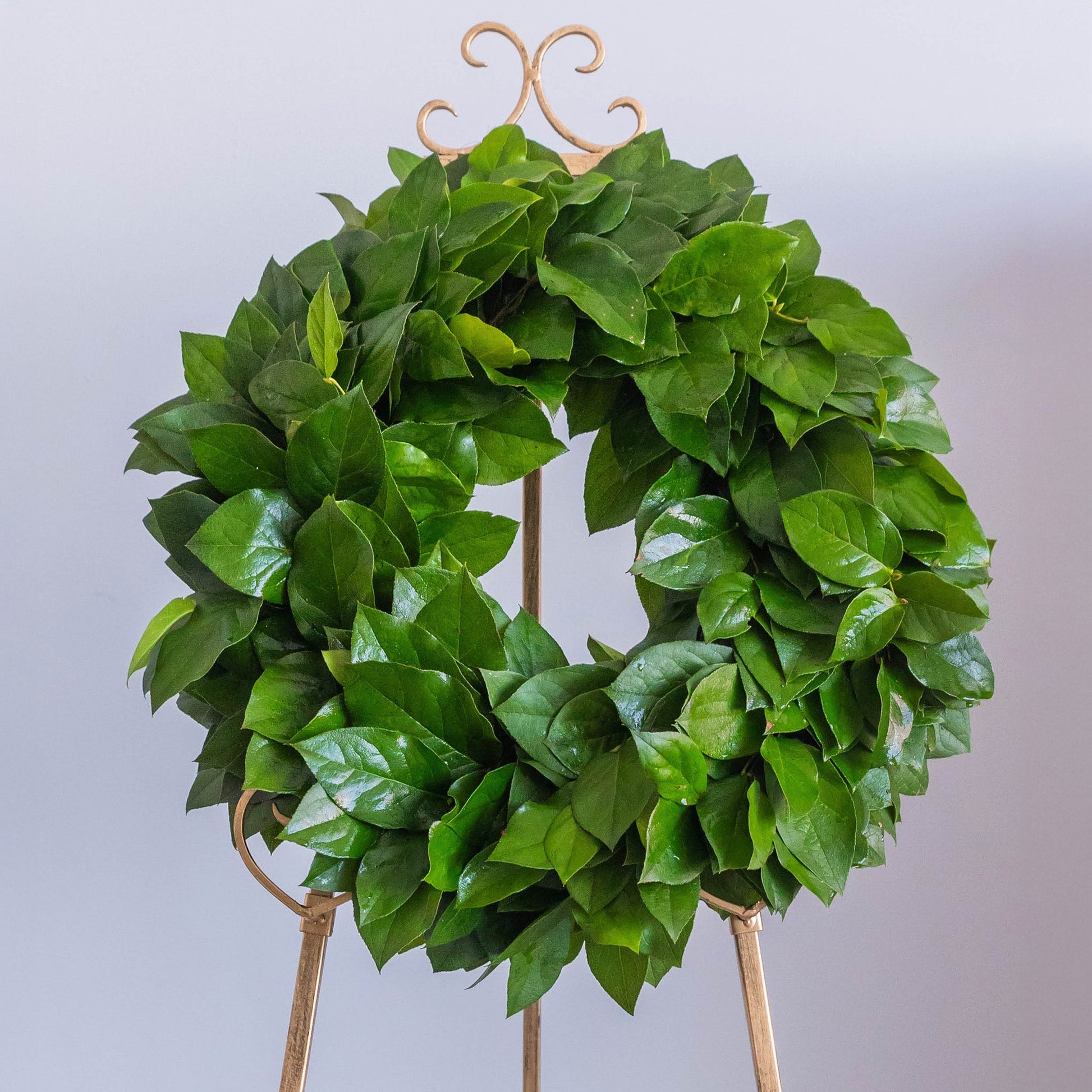 The salal classic is a perfect holiday accent featuring pacfic northwest salal woven into the traditional wreath shape.
